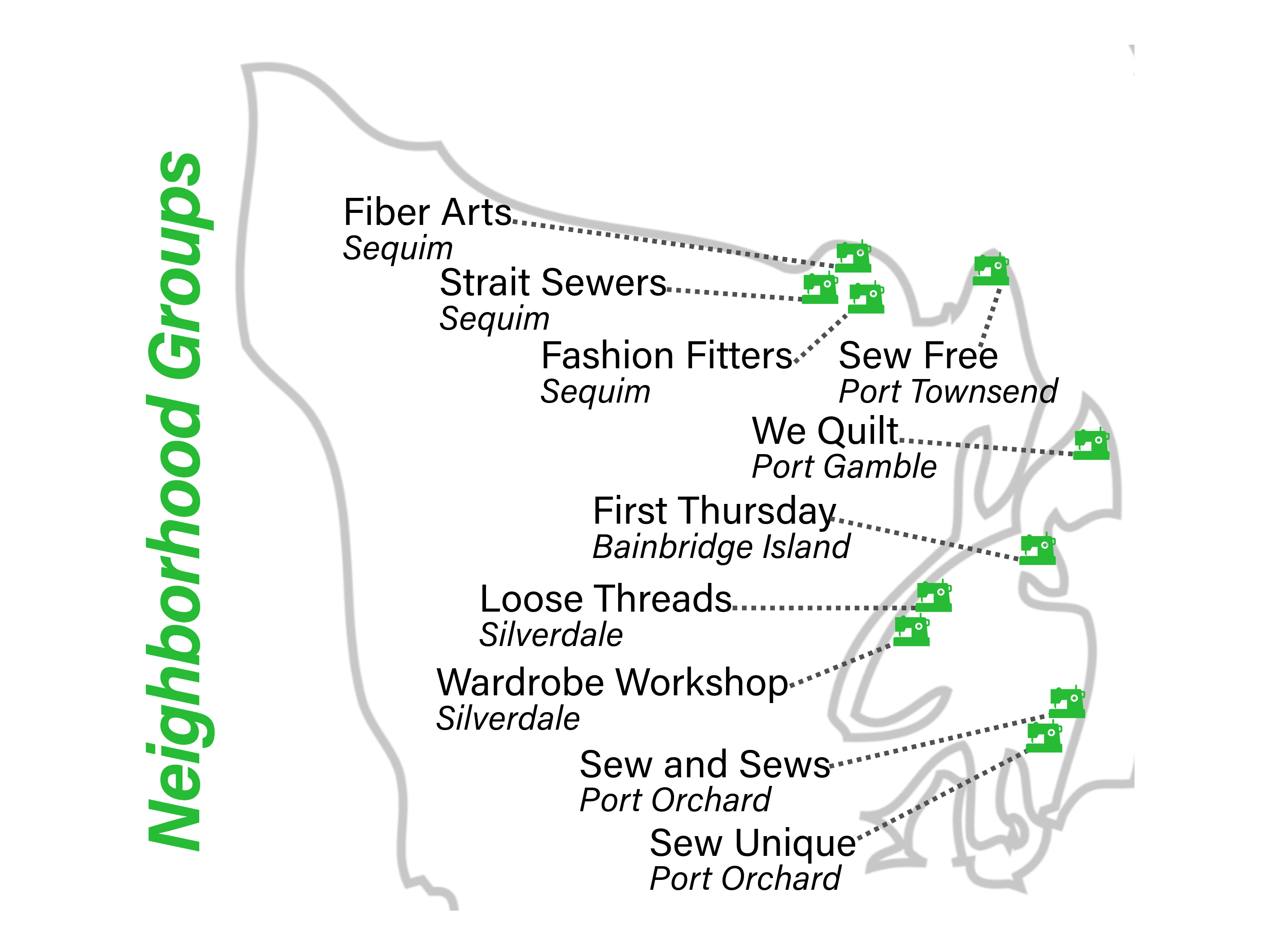 The Washington Peninsulas Chapter has ten neighborhood groups/special interest groups. Please refer to the list to find a meeting near you. Non-members may attend two meetings prior to joining American Sewing Guild. If you are interested in attending a meeting, please contact us several days prior to the meeting so that we can confirm for you the location and day/time for their next meet up.
